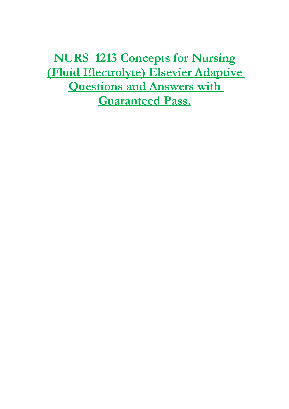 Ace your upcoming Nurs 1213 exam with this comprehensive resource! It contains Elsevier Adaptive Questions and Answers related to Fluid Electrolyte Concepts for Nursing. This material is tailored to help you avoid resits and achieve a first-time pass on your exams.
