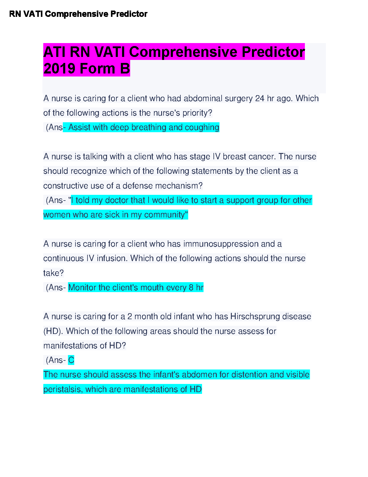 ATI RN VATI Comprehensive Predictor 2019 Form B: Ace Your Nursing Exams on the First Attempt