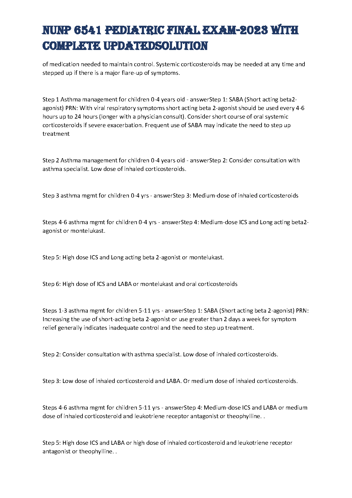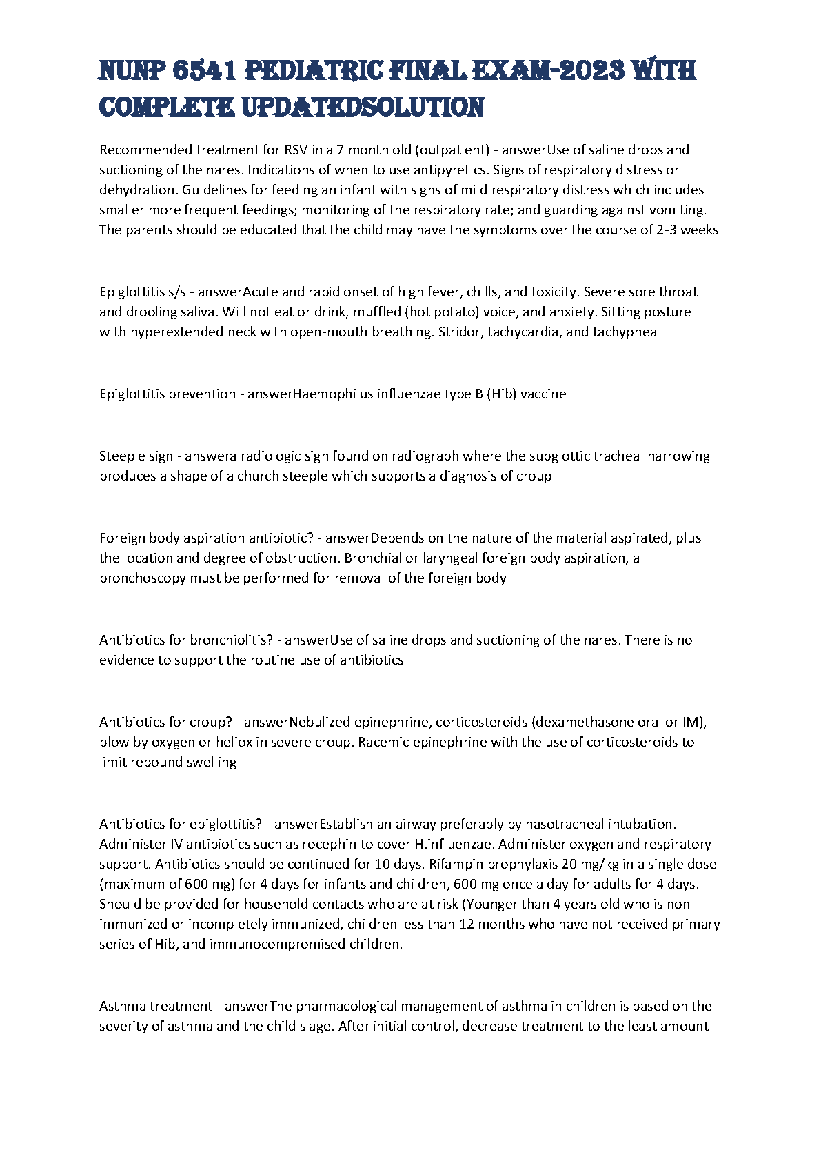NUNP 6541 Pediatric Final Exam - 2023 Complete Updated Solution, a comprehensive resource, offers in-depth explanations and solutions for the NUNP 6541 course. Covering a wide range of topics including airway management, respiratory distress, foreign body aspiration, asthma, and much more, this resource is a valuable tool for students aiming for success in their final exam. The resource provides clarity, and helps students grasp challenging concepts.