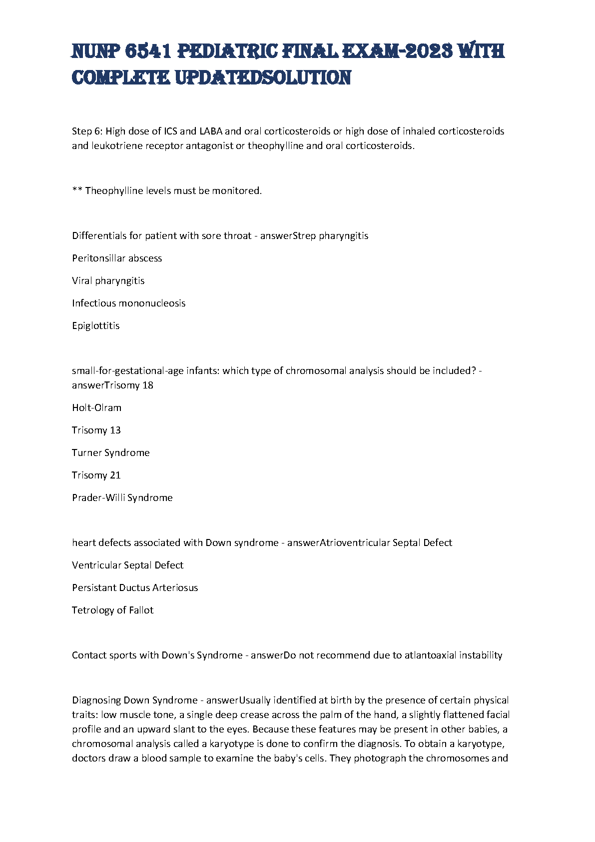 NUNP 6541 Pediatric Final Exam - 2023 Complete Updated Solution