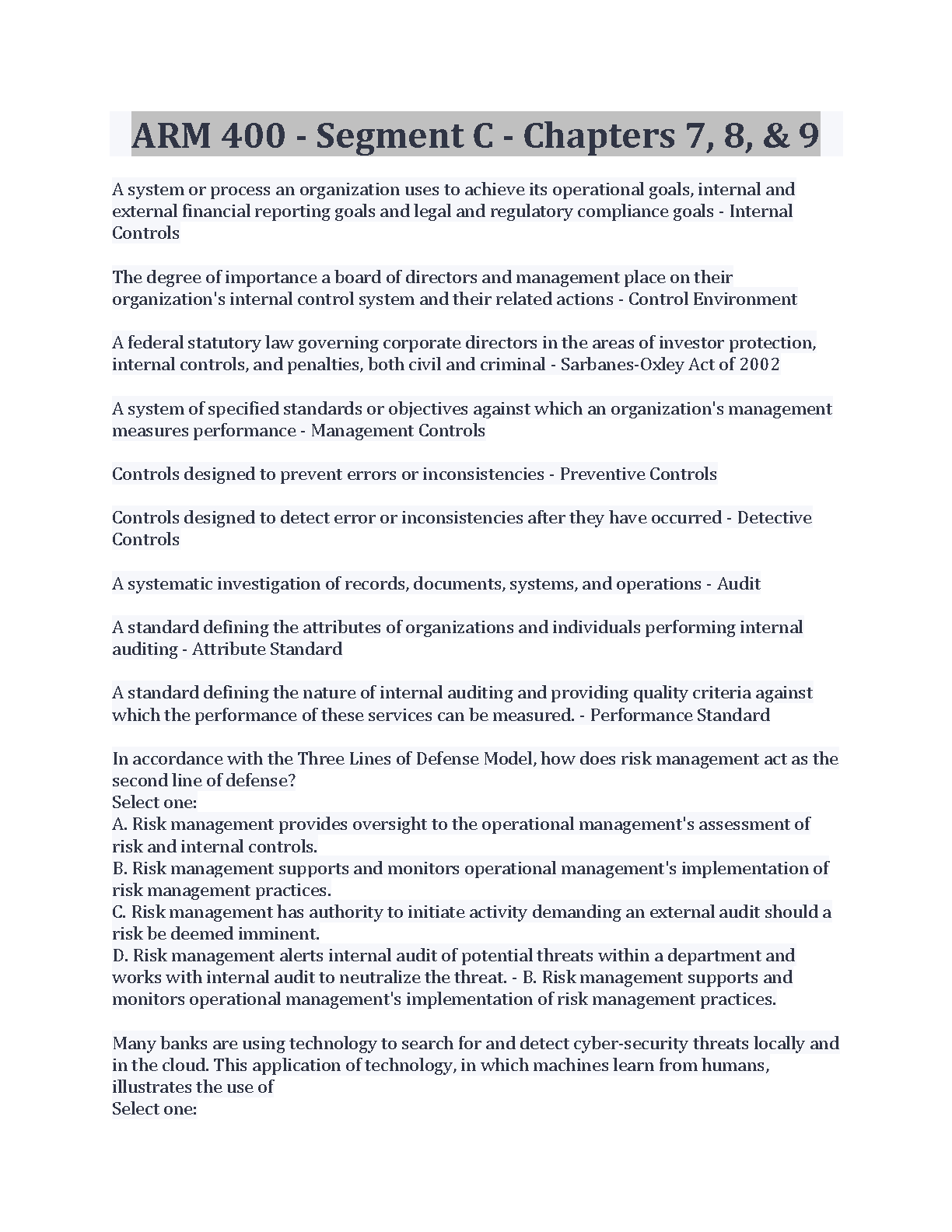 ARM 400 - Segment C - Chapters 7, 8, & 9: The Complete Guide to Mastering Internal Controls, Risk Management, and Audit - 2024/2025 Edition by Authors