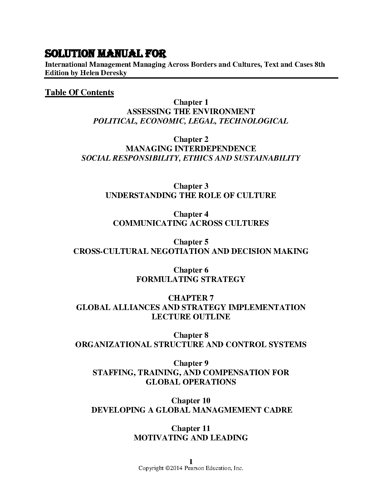 International Management Managing Across Borders and Cultures, Text and Cases 8th Edition by Helen Deresky Solution Manual