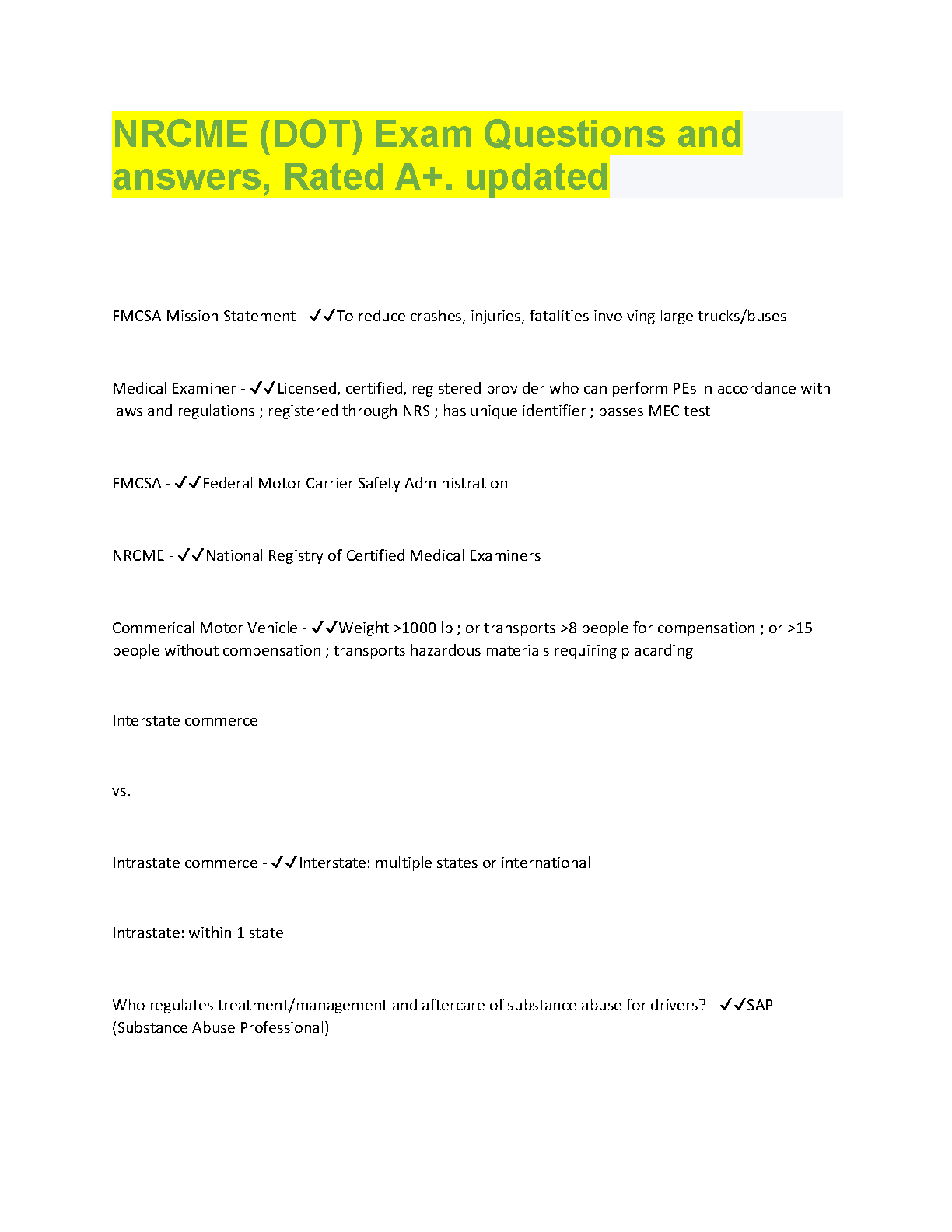 This comprehensive study guide for the NRCME (DOT) Exam includes updated exam questions and answers, covering all aspects of the exam syllabus, to help you ace your first attempt and avoid resits.