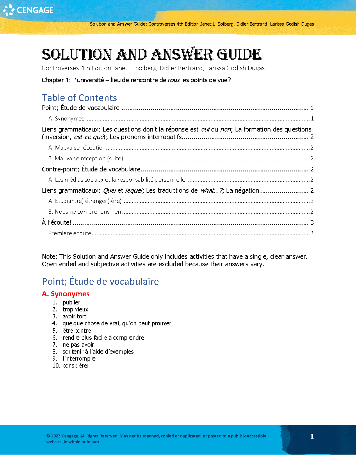 Controverses 4th Edition Janet L. Solberg, Didier Bertrand, Larissa Godish Duga Solution and Answer Guide