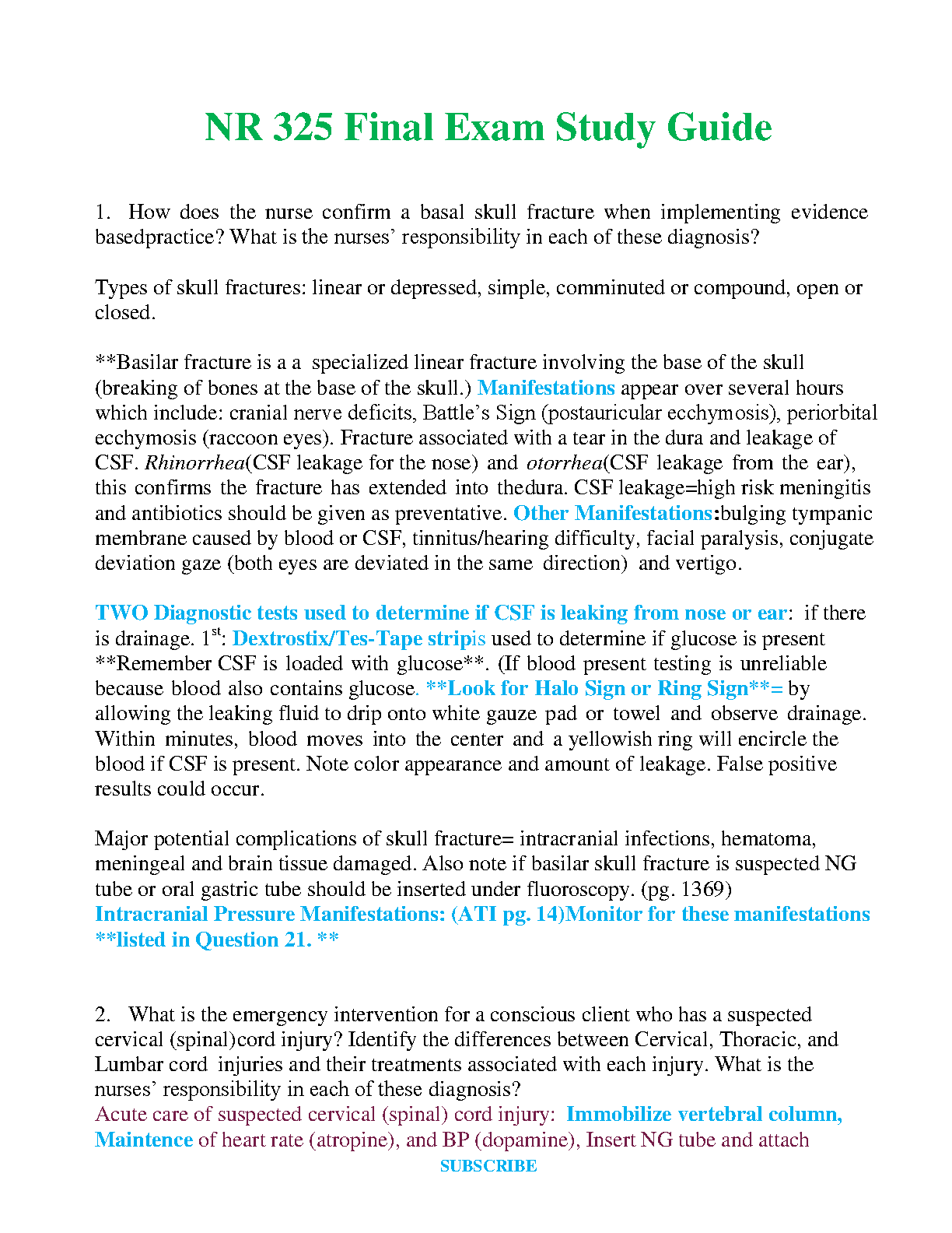 NR 325 Final Exam Study Guide - 2024/2025 - Pass Your Exams on the First Attempt