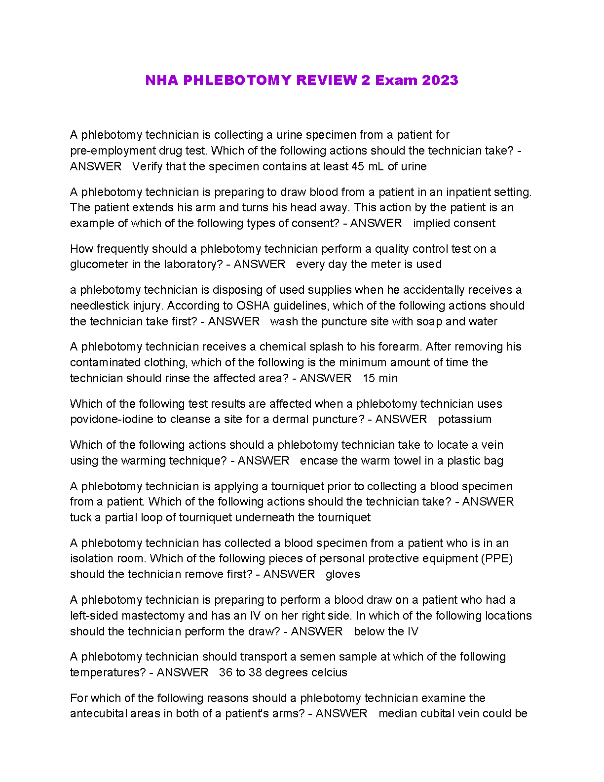 NHA Phlebotomy Review 2 Exam 2023: Comprehensive Guide for Passing Your Exam on the First Attempt