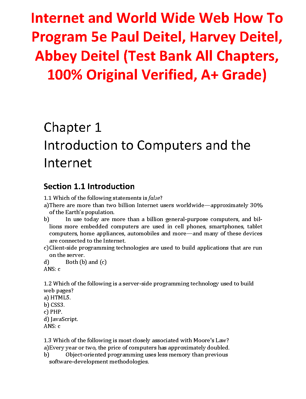 Get a strong foundation in computer programming with this comprehensive test bank for 'Internet and World Wide Web How To Program 5e' by Paul Deitel, Harvey Deitel, and Abbey Deitel. This resource provides you with practice questions and solutions for all chapters, ensuring you master the concepts and are fully prepared for your exams.