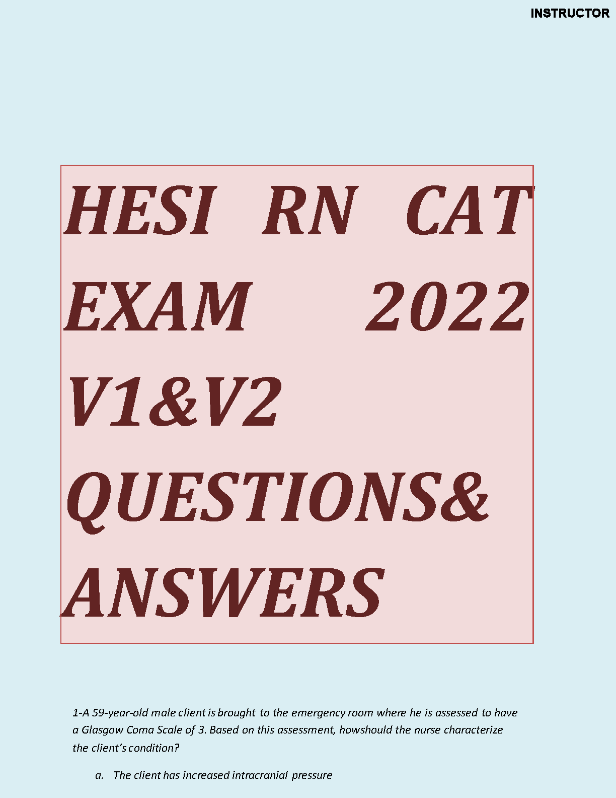 HESI RN CAT Exam 2022 V1 & V2 Questions & Answers - Pass Your Exam on the First Try!
