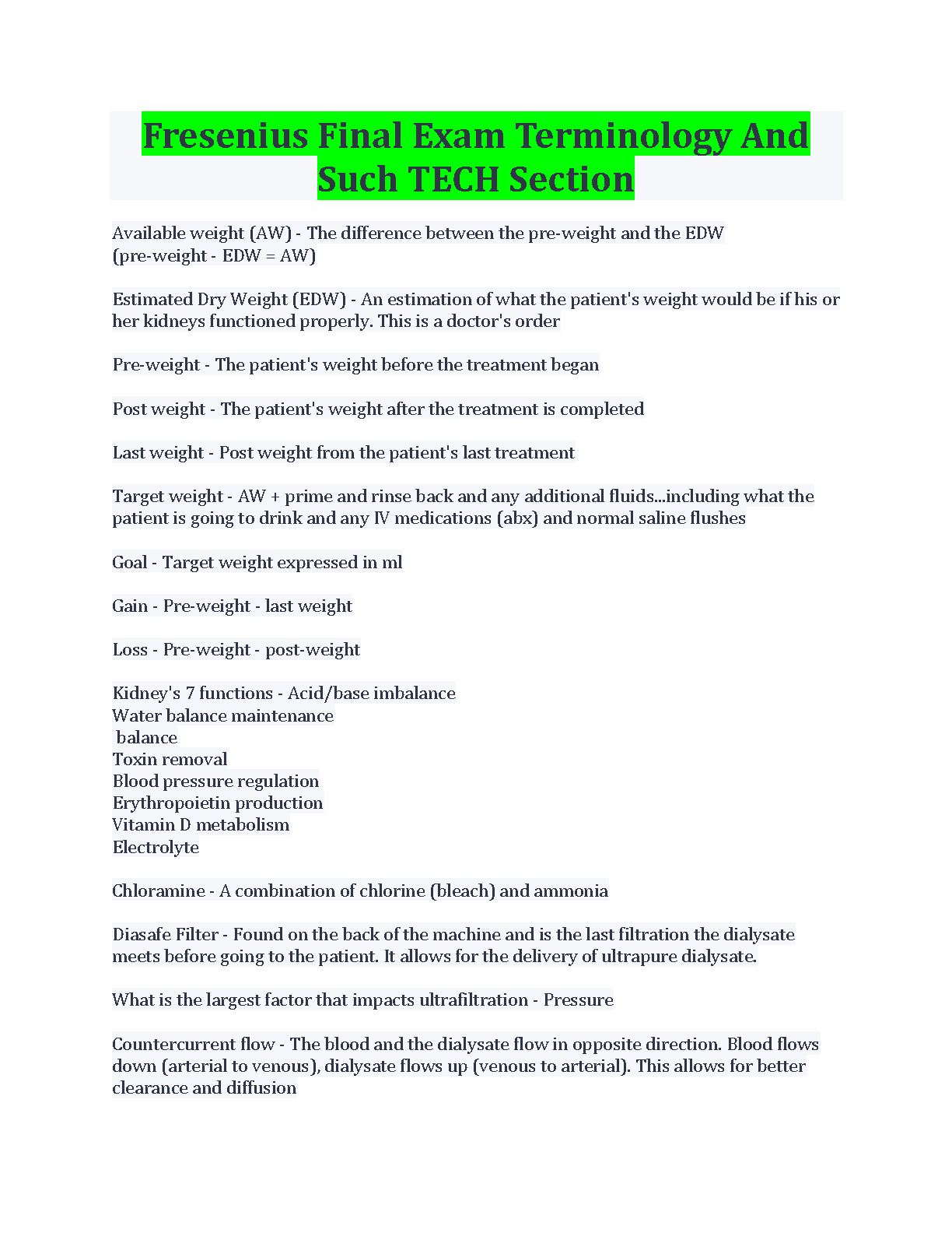Fresenius Final Exam Terminology and Such TECH Section - The Complete Guide For Passing Exams on the First Attempt - Edition 2024/2025