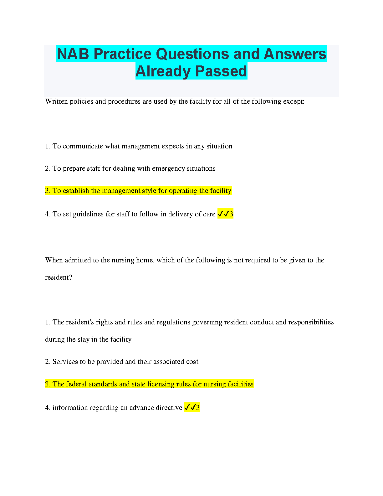 This resource contains practice questions and answers for the NAB exam, designed to help students pass their exam on the first attempt and avoid resits. The questions are based on the latest exam syllabus and are designed to test students' knowledge of the key concepts.