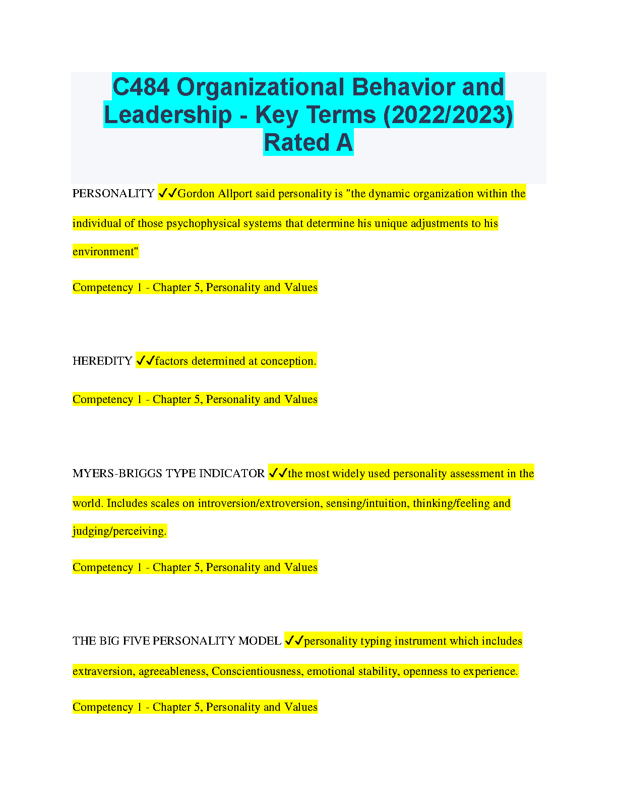 C484 Organizational Behavior and Leadership - Key Terms (2022/2023) Rated A - by Gordon Allport