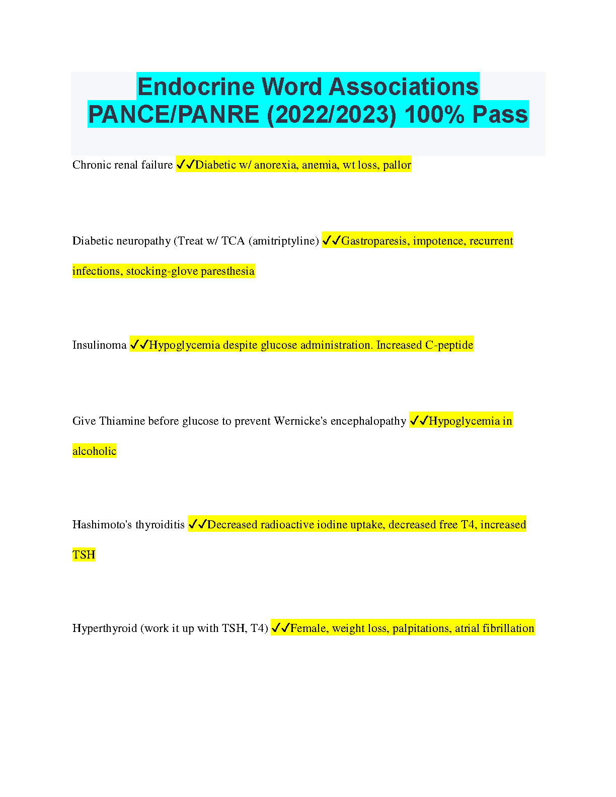 Endocrine Word Associations PANCE/PANRE (2022/2023) 100% Pass - A Complete Guide for Students