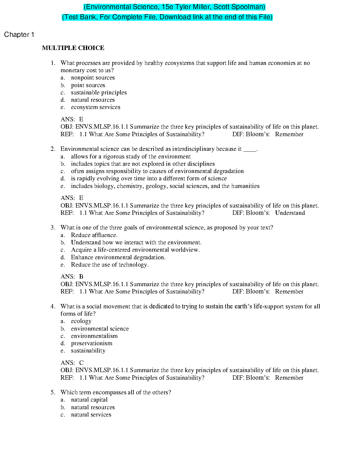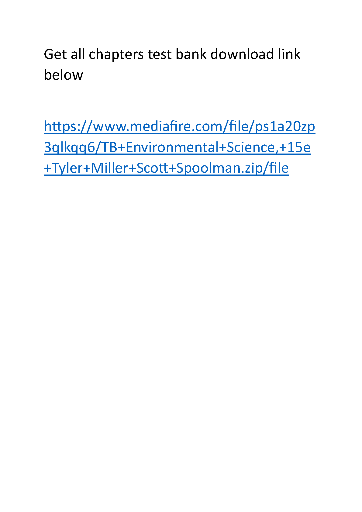 Environmental Science 15e: Tyler Miller, Scott Spoolman - Test Bank for Complete File. Download Link at the End of This File.