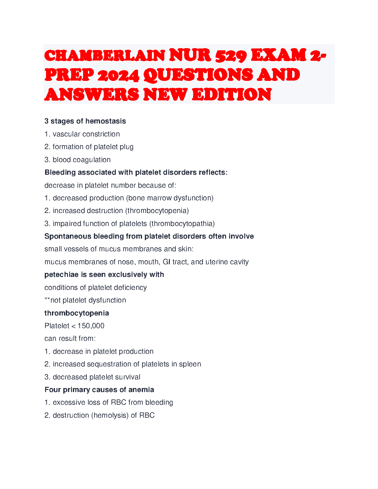 Chamberlain NUR 529 Exam 2-Prep 2024 Questions and Answers New Edition by [Author name of the Book]