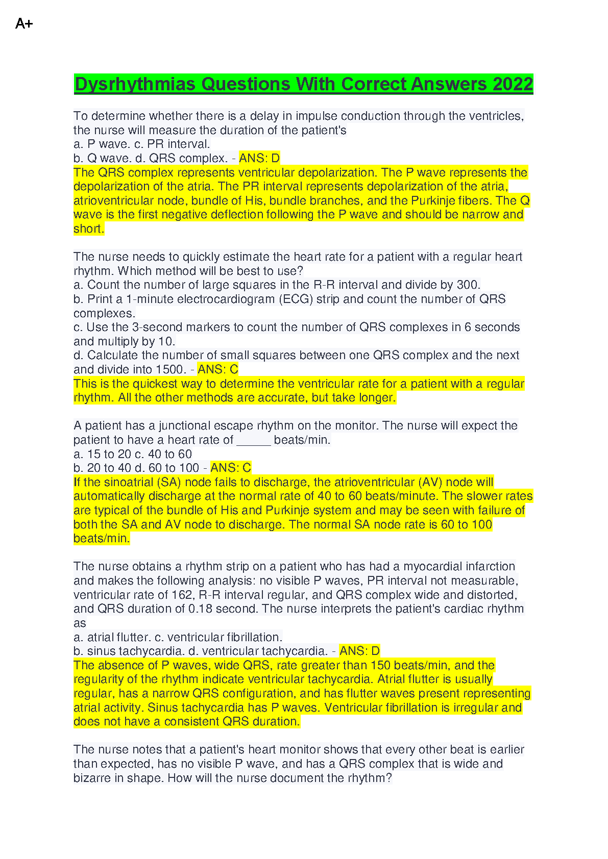 This valuable resource is a comprehensive study guide designed to help students excel in their dysrhythmias exam preparation. It features a collection of questions with correct answers and detailed explanations.
