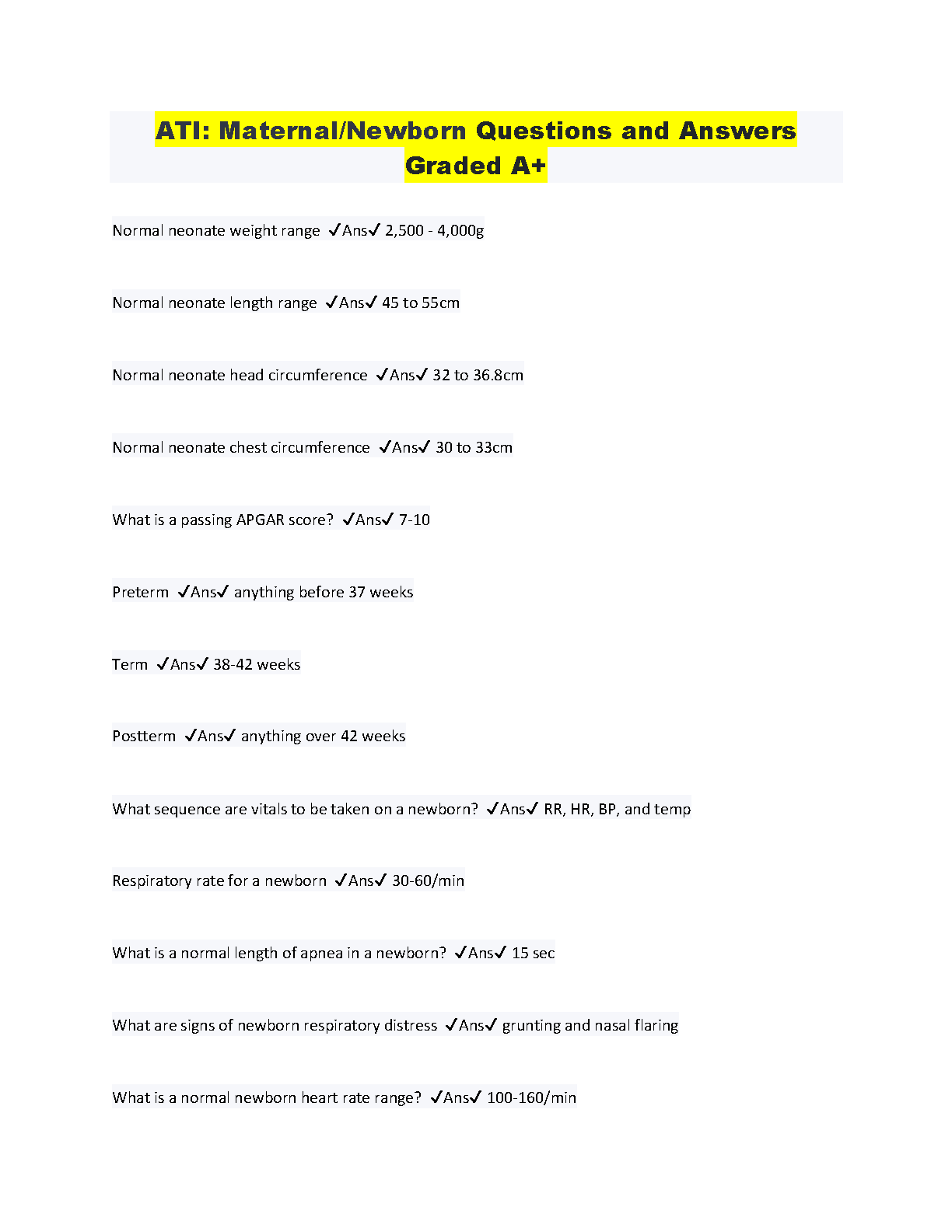ATI Maternal Newborn Questions and Answers Graded A+ for 2024/2025 - Ace Your Exams on the First Attempt