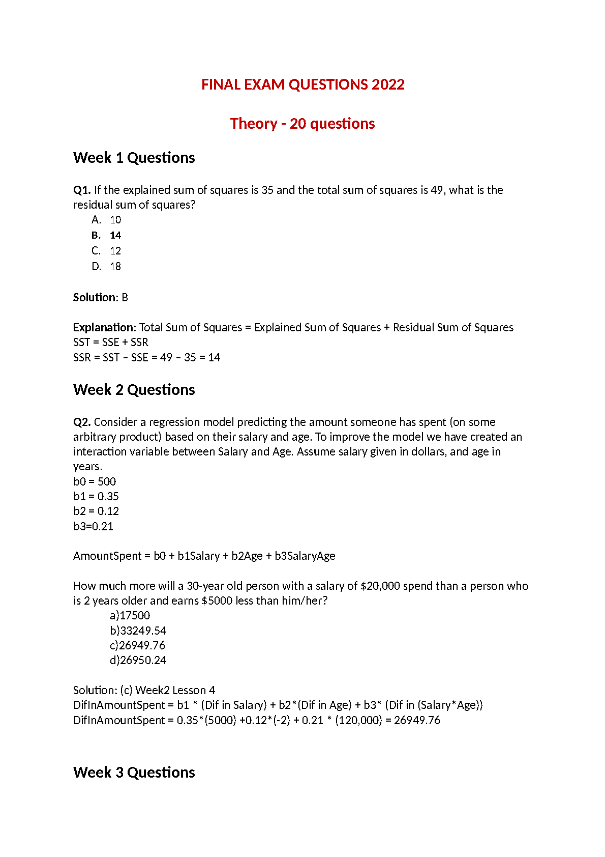 Final Exam Questions 2022 - Theory - 20 questions