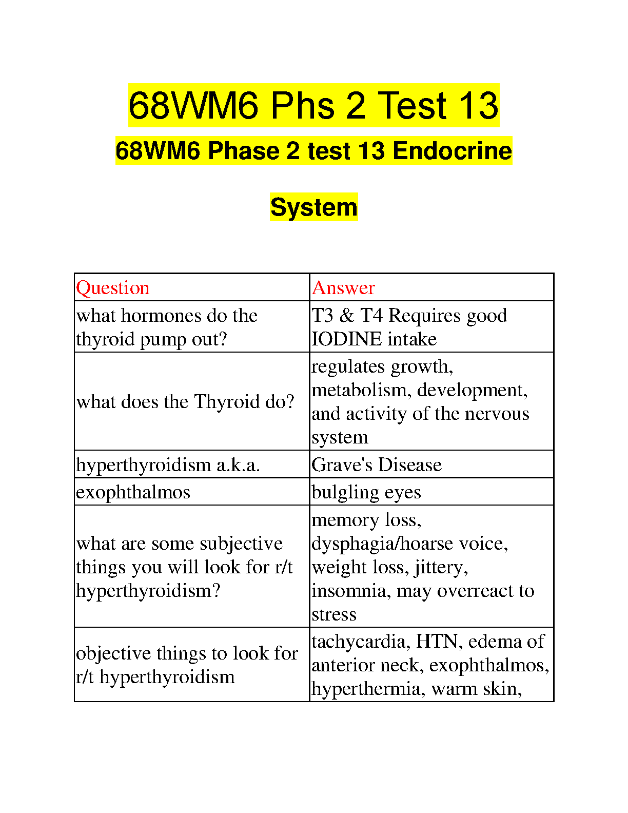 68WM6 Phase 2 Test 13 Endocrine System - Mastering Endocrine System for Nursing Exams: 2024-2025 Edition