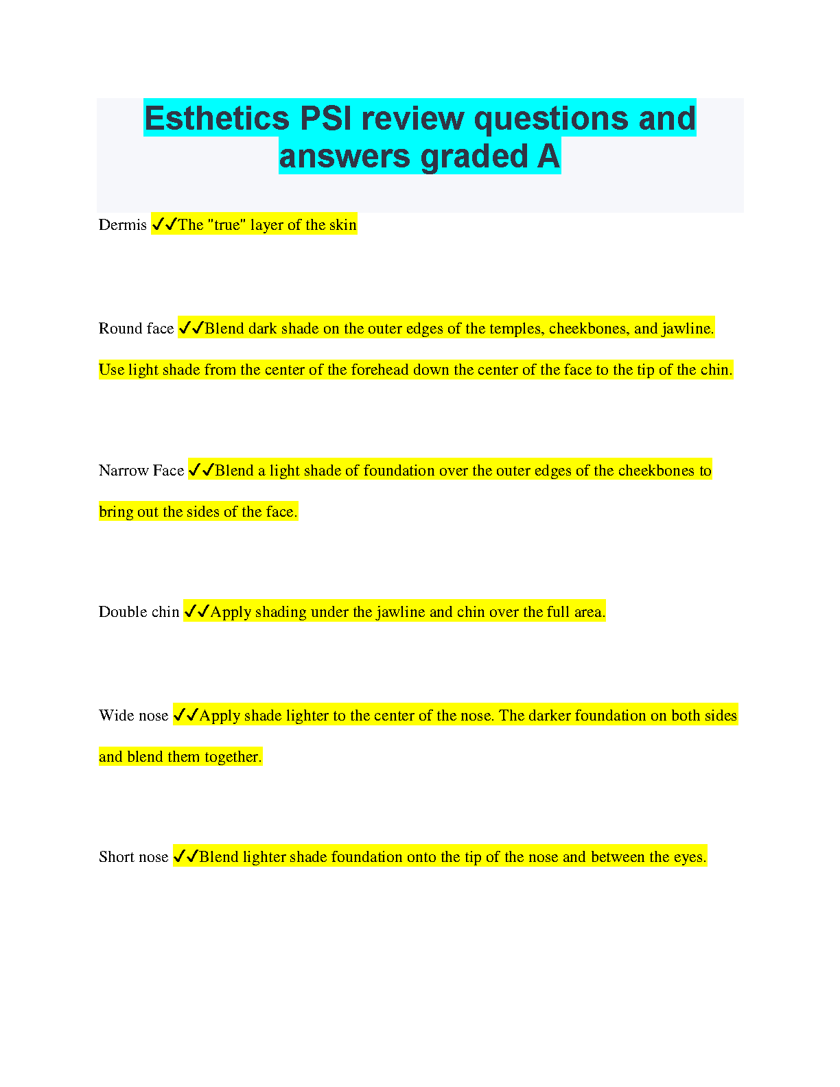 Esthetics PSI Review Questions and Answers Graded A: A Comprehensive Guide for Exam Success in 2024/2025
