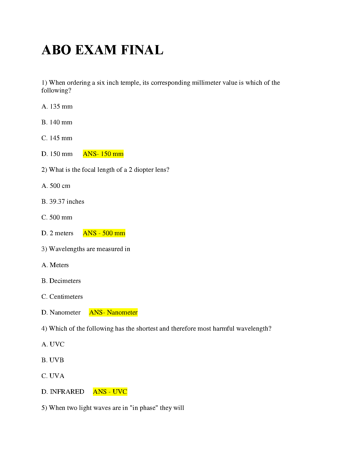 Ace your ABO Exam with this comprehensive set of practice questions. Cover key concepts and get ready to pass your first attempt.