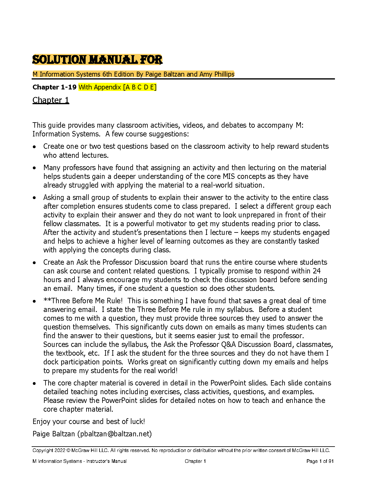 Business-Driven Information Systems Sixth Edition Solution Manual by Paige Baltzan
