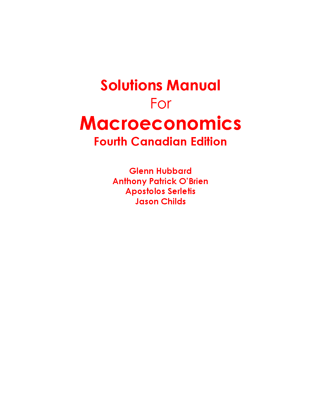 Solutions Manual for Macroeconomics - 4th Canadian Edition by Glenn Hubbard, Anthony Patrick O'Brien, Apostolis Serletis, and Jason Childs