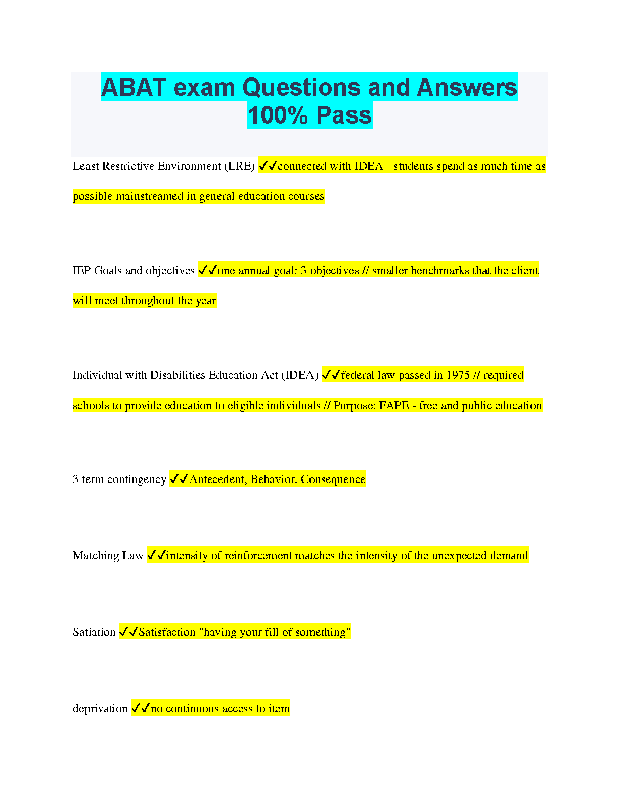 ABAT Exam Questions and Answers: 100% Pass (2024/2025 Edition) - Guaranteed Success on your First Attempt!