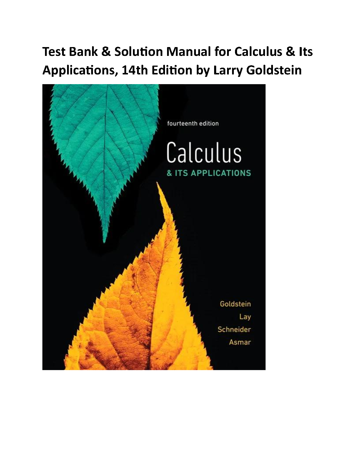 Calculus and Its Applications 14th Edition Test Bank - Goldstein, Lay, Schneider, Asmar