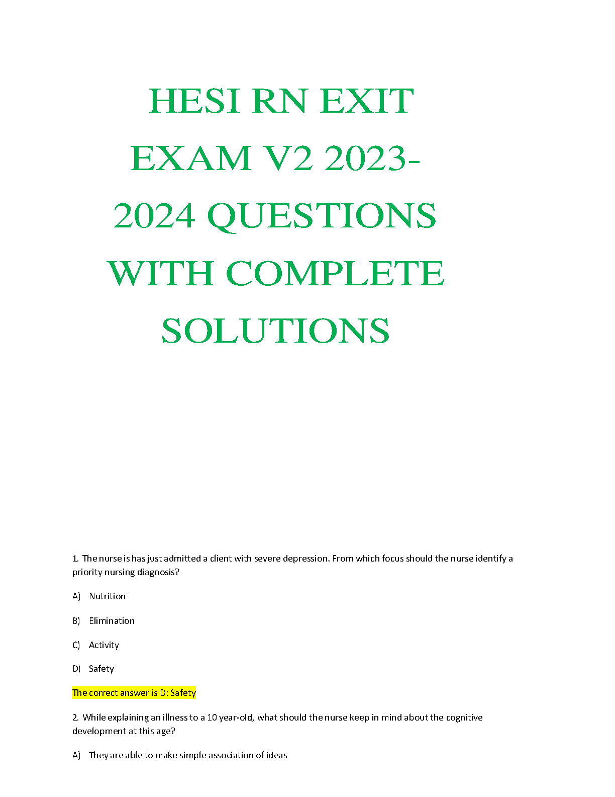 HESI RN Exit Exam V2 2023-2024 Questions with Complete Solutions by HESI
