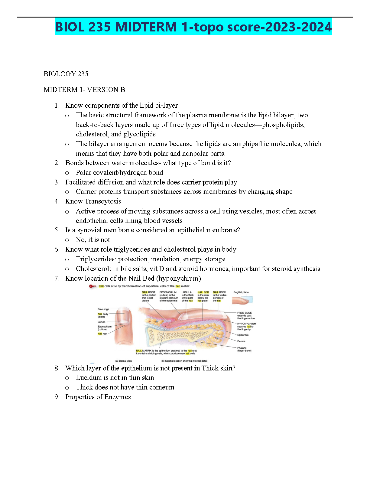 Biology 235 Midterm 1 - Version B - Prepare for Your Exam - Achieve First Time Success in 2024/2025
