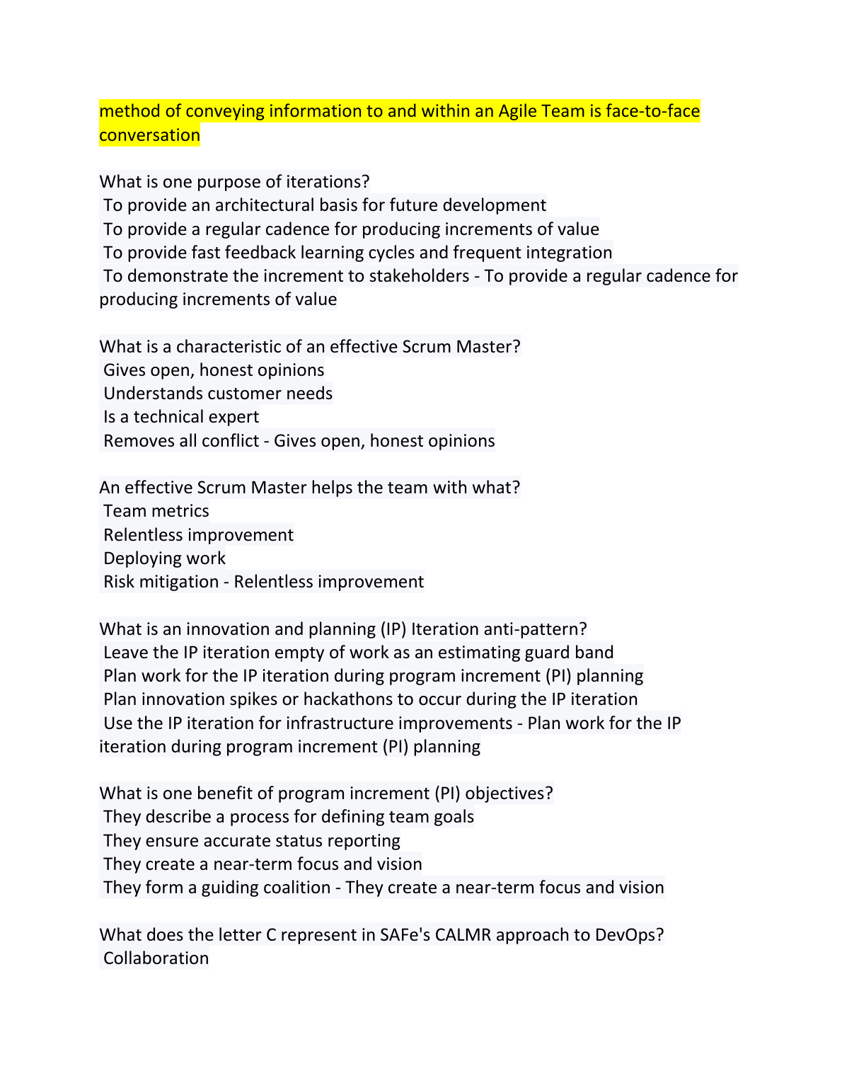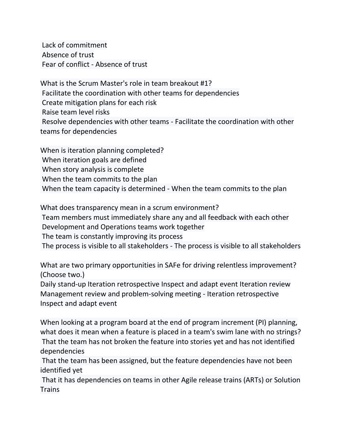 SAFe 5 Scrum Master Questions & Answers 2022/2023