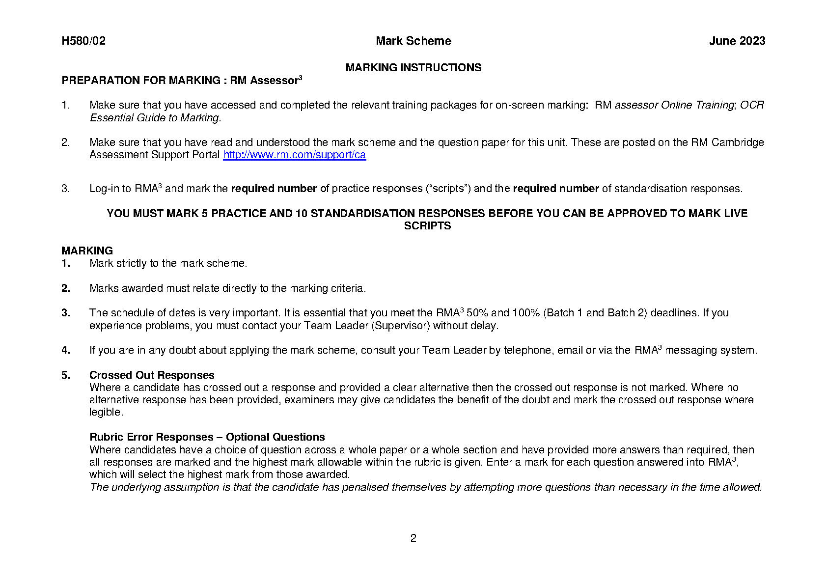 This is the official mark scheme for the OCR A Level Sociology H580/02 June 2023 exam paper. This mark scheme is perfect for students wanting to understand the assessment criteria and learn how to answer the questions in the best possible way.