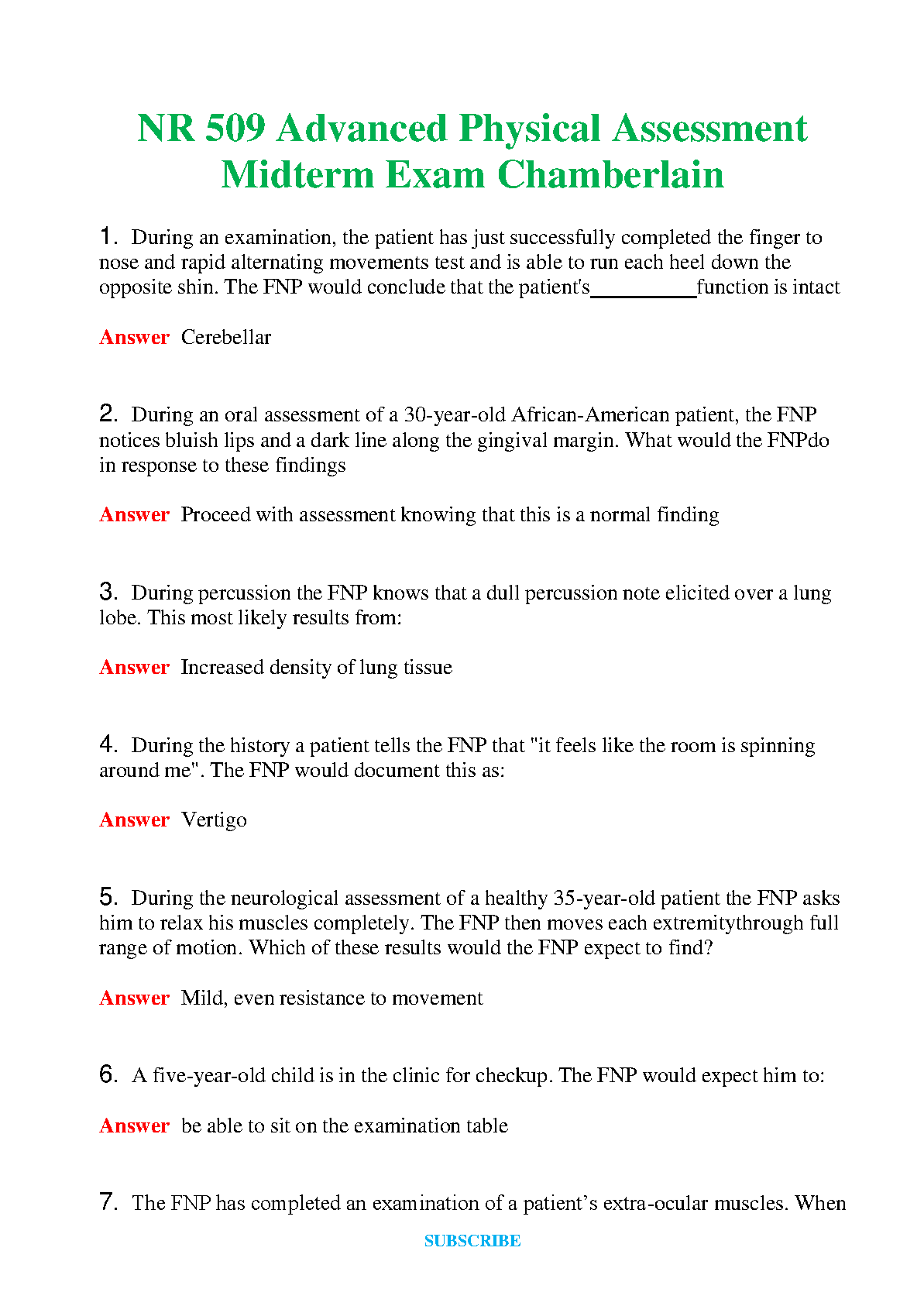 Ace your NR 509 Advanced Physical Assessment Midterm Exam with this comprehensive study guide. Designed specifically for the 2024/2025 academic year, this resource provides targeted practice questions and answers, helping you master essential concepts and avoid resits.