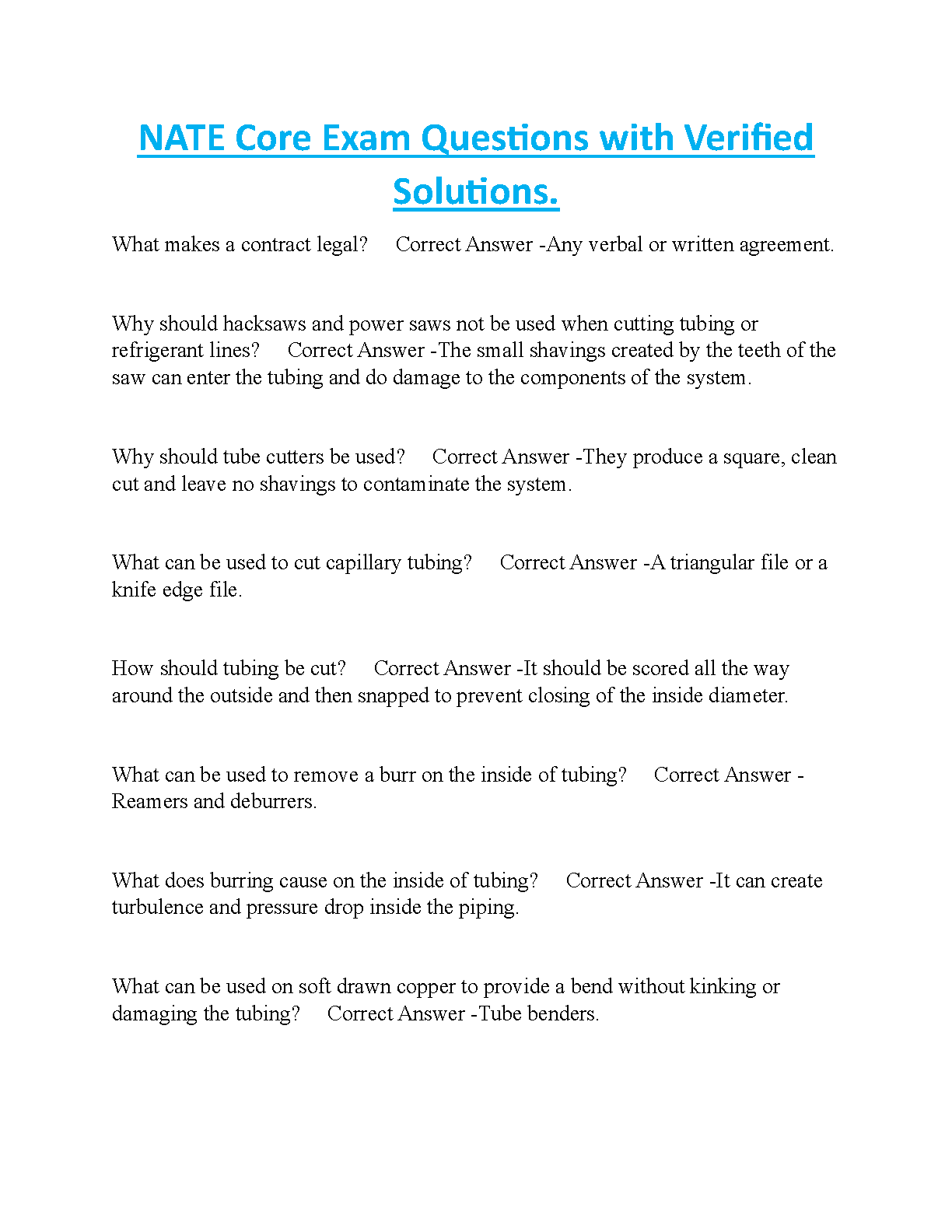 This comprehensive study guide covers all the important concepts of the NATE Core Exam with detailed explanations and verified solutions, providing a valuable resource for HVAC technicians aspiring to pass the exam on their first attempt.