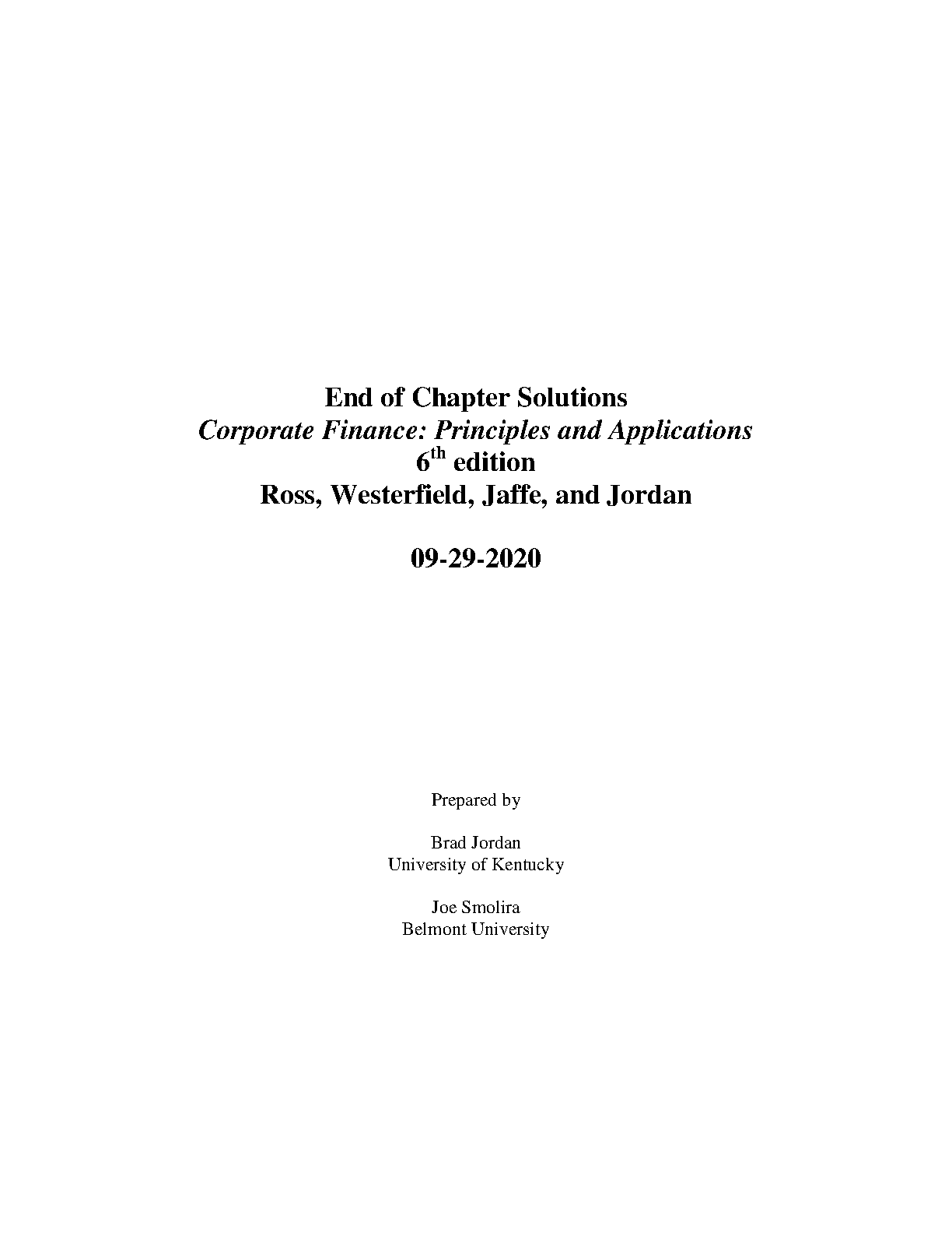 Corporate Finance: Principles and Applications 6th Edition by Ross, Westerfield, Jaffe, and Jordan Solutions Manual