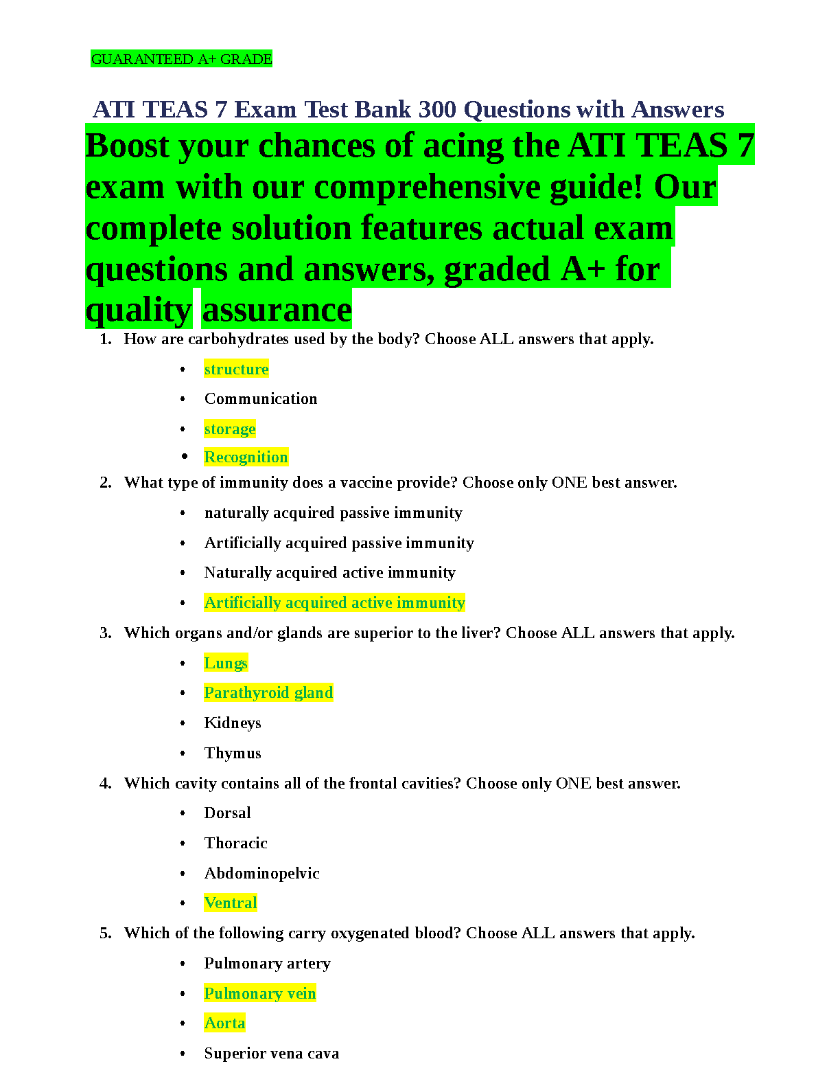 ATI TEAS 7 Exam Test Bank 300 Questions with Answers by Linda Anne - Ace Your Exam on the First Attempt