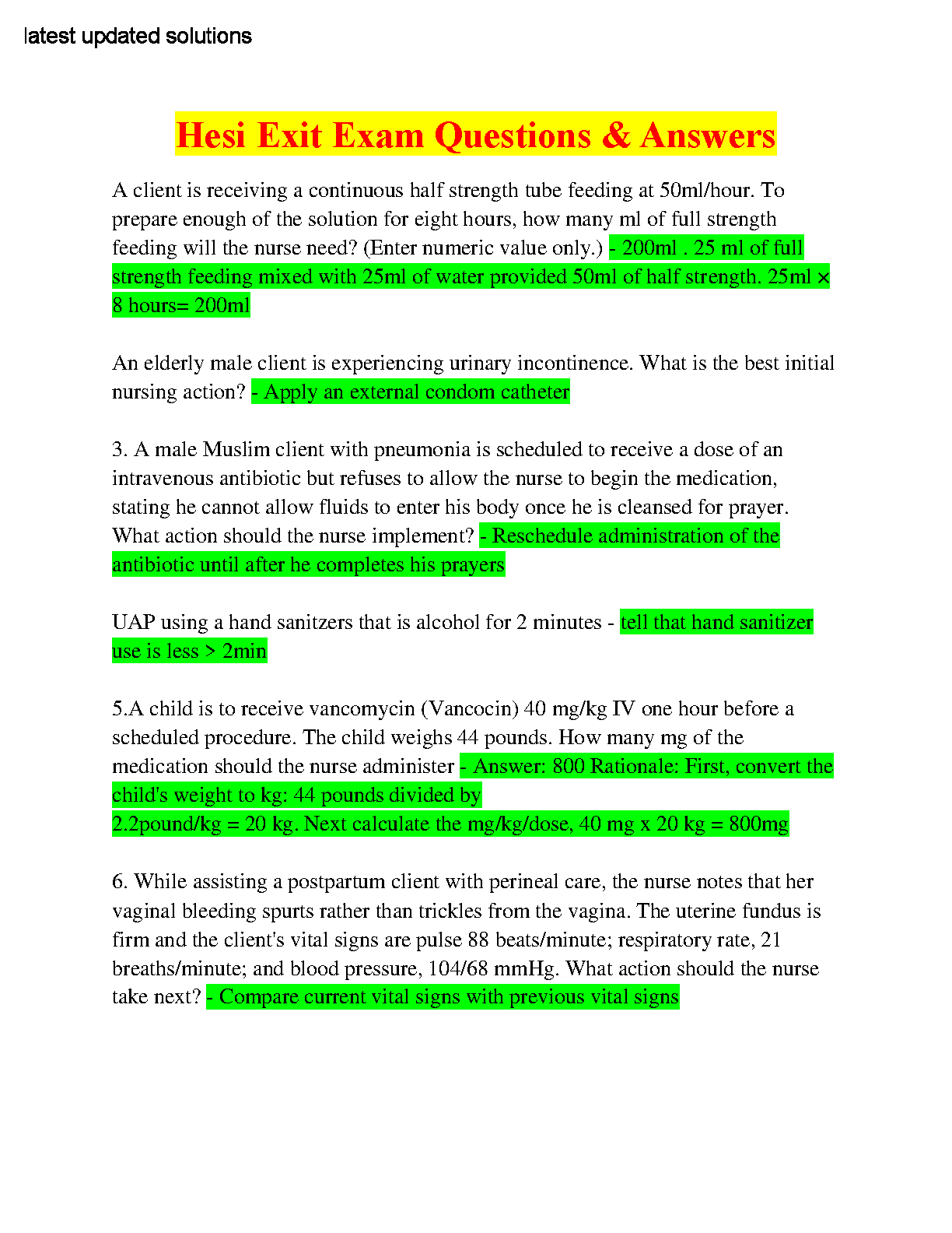 HESI Exit Exam Questions & Answers - Latest Edition 2024/2025 - Guaranteed First Attempt Success
