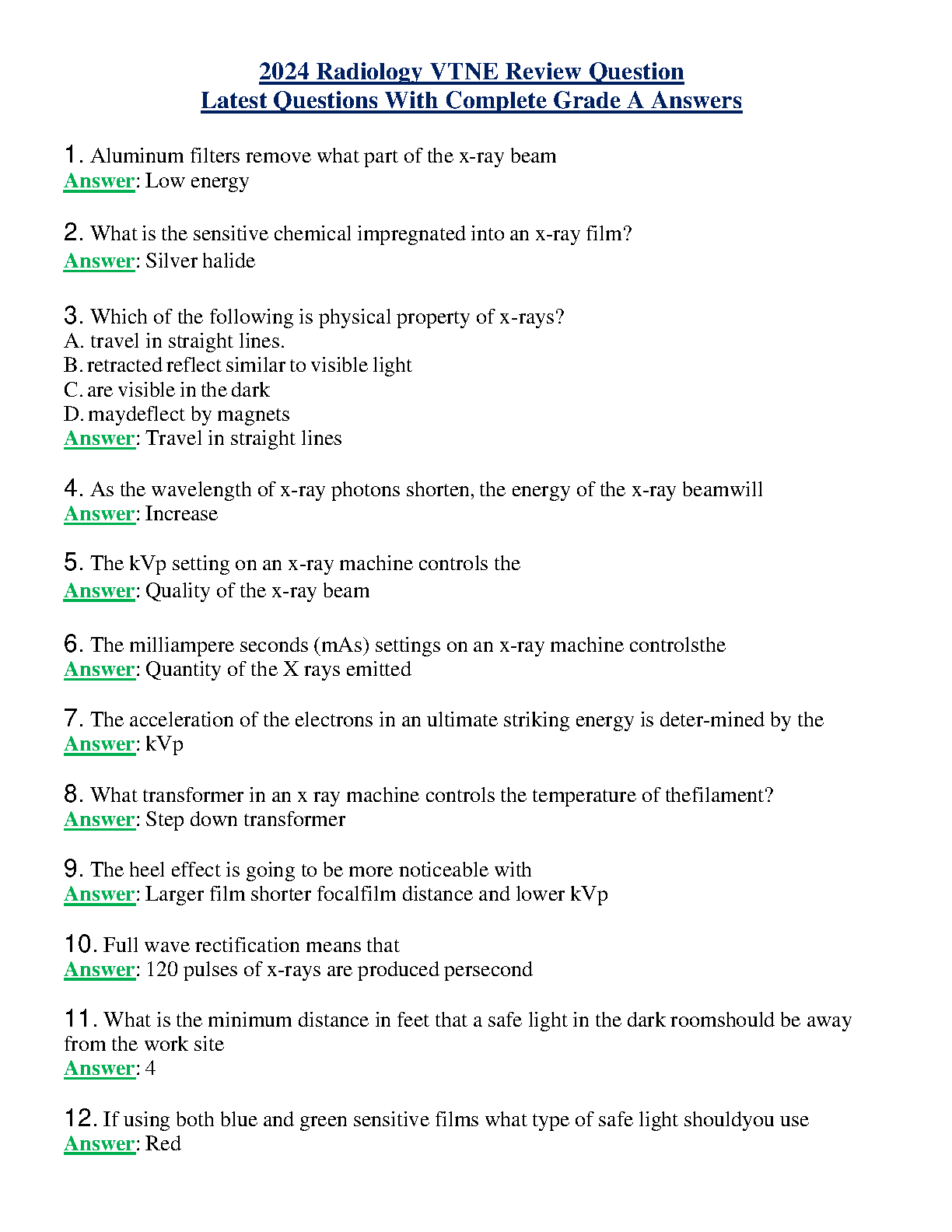 This comprehensive study guide includes 2024 Radiology VTNE review questions with complete answers, covering all essential topics for the exam. It helps students ace their first attempt and avoid resits.