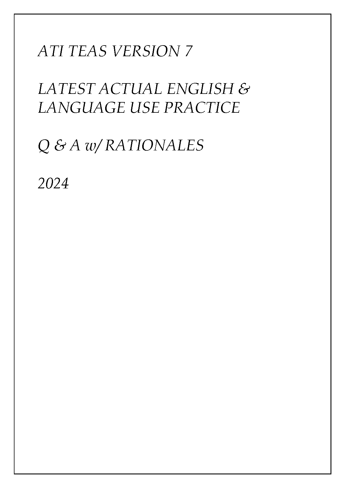 ATI TEAS Version 7 English & Language Use Practice Questions & Answers with Rationales 2024/2025