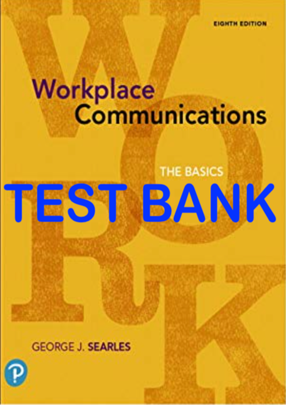 This test bank for the 8th edition of "Workplace Communications: The Basics" by George J. Searles provides a comprehensive set of practice questions to help students test their knowledge and prepare for exams. The test bank includes a variety of question types, including multiple choice, true/false, and short answer.