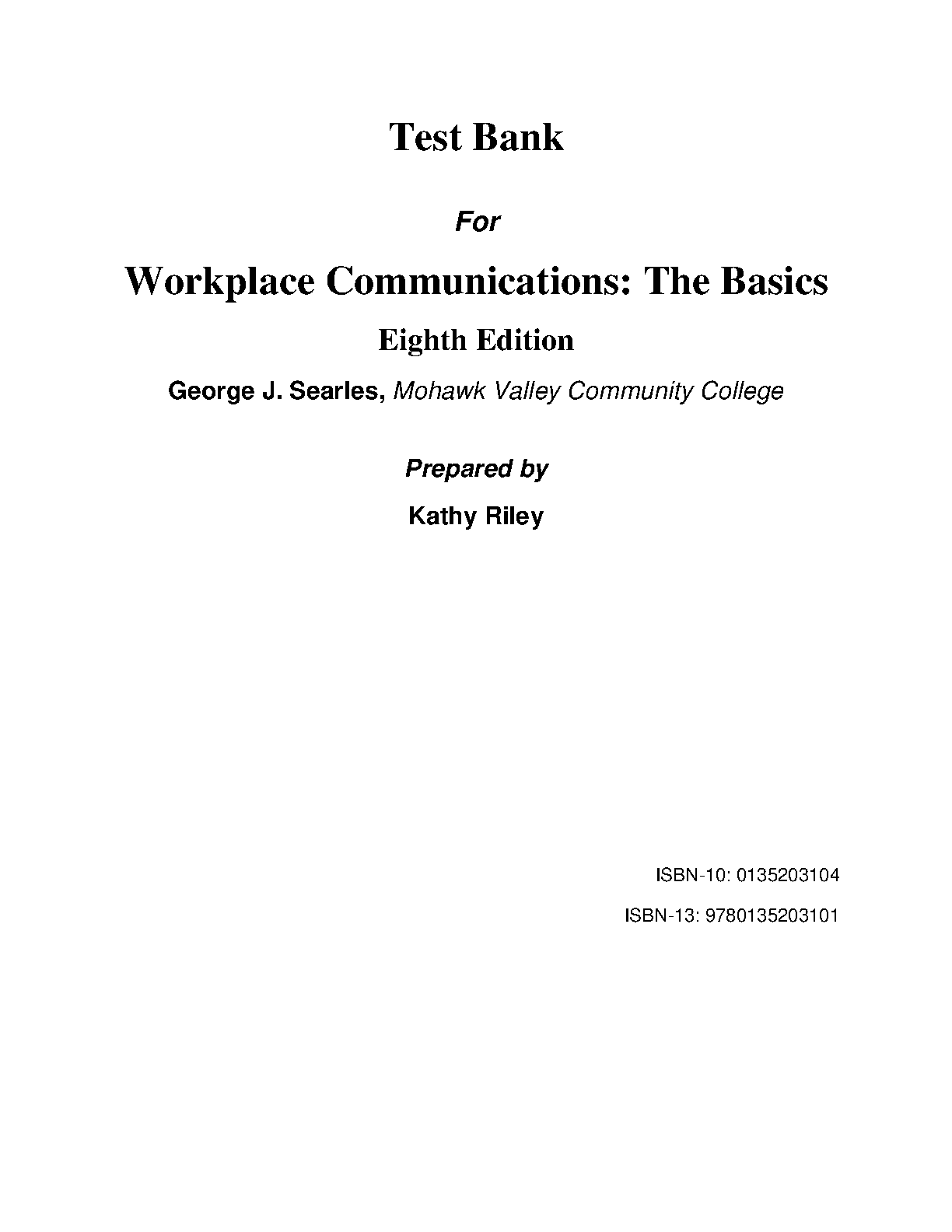 Workplace Communications: The Basics, 8th Edition, Test Bank by George J. Searles