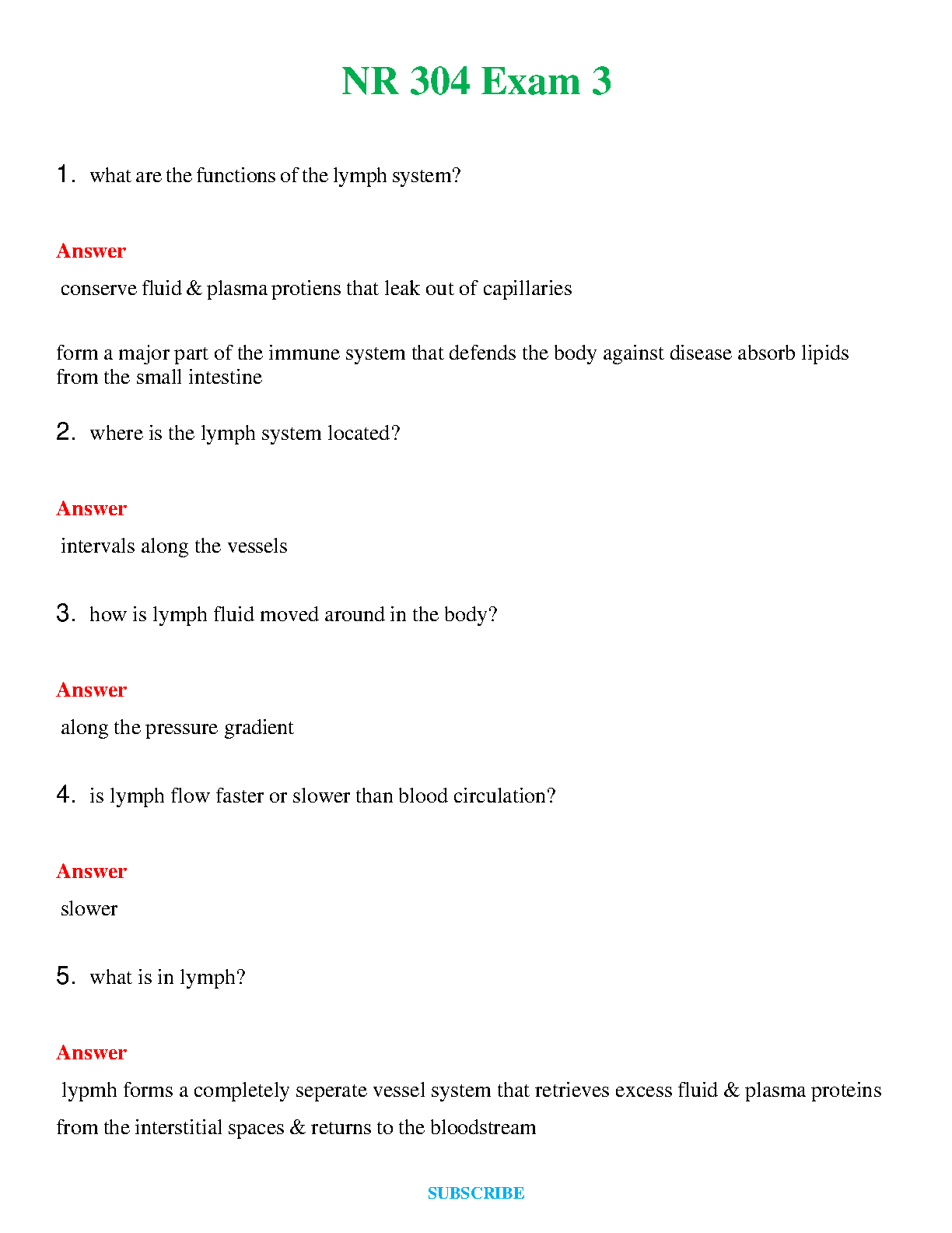 NR 304 Exam 3: Lymphatic System Questions and Answers