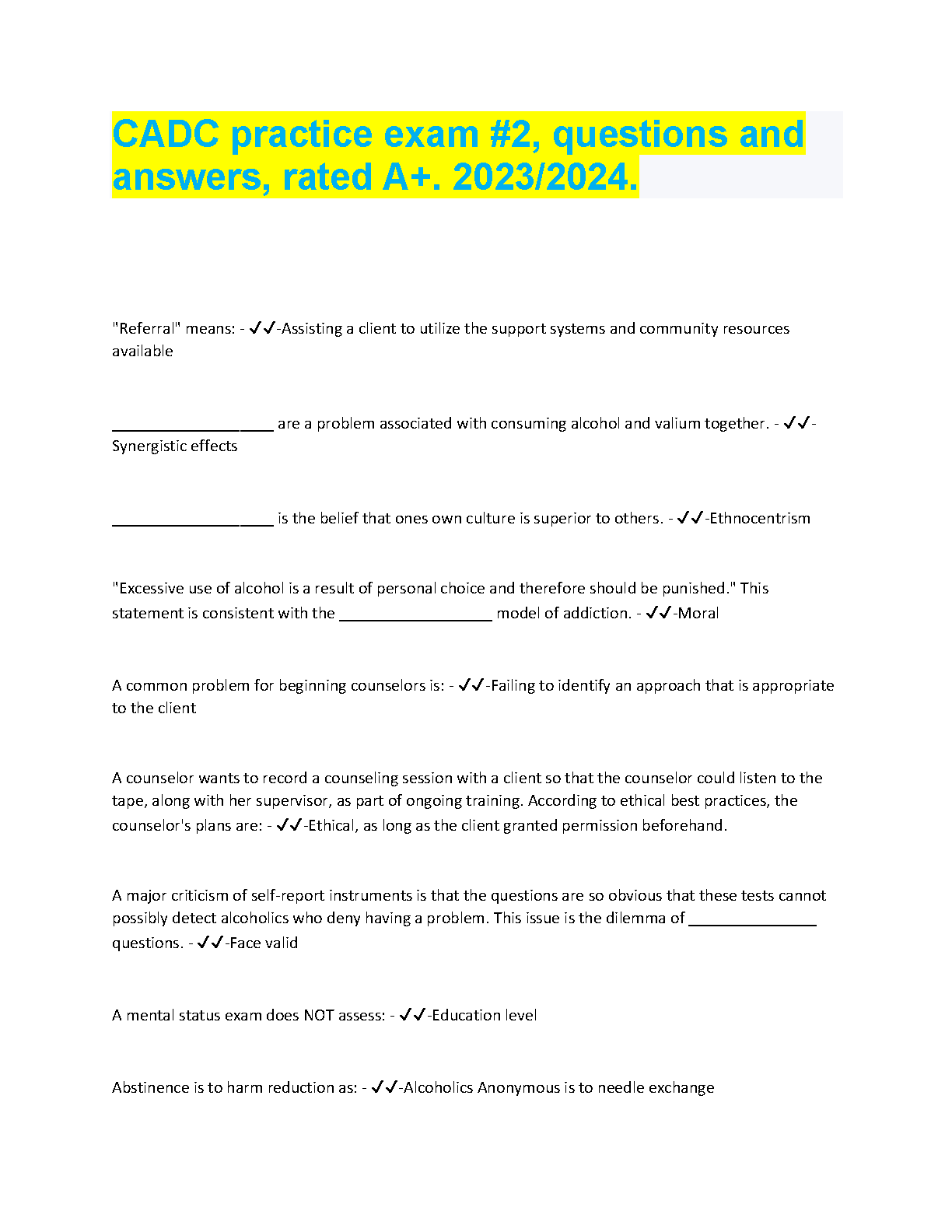 CADC Practice Exam #2: Questions and Answers, Rated A+ - 2023/2024 - Complete Study Guide for Success