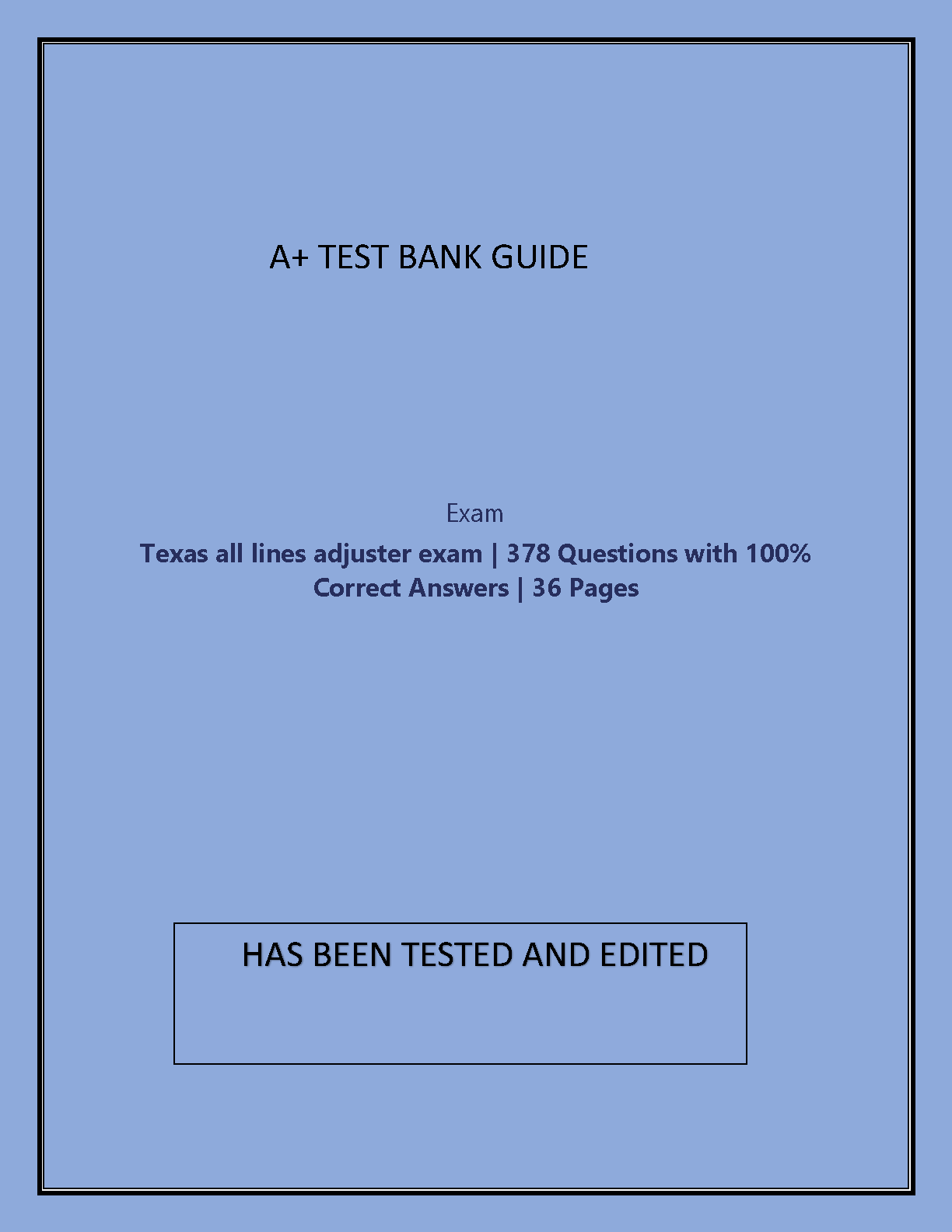 A+ Test Bank Guide: Texas All Lines Adjuster Exam with 378 Questions and 100% Correct Answers (2024-2025)