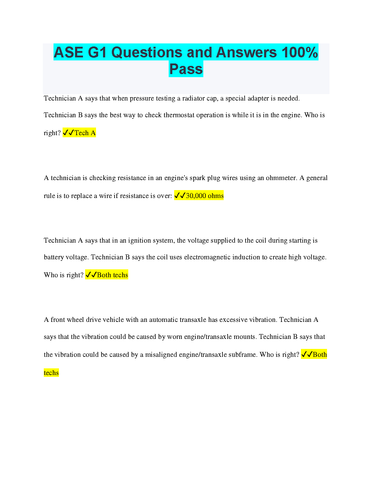 ASE G1 Questions and Answers 100% Pass 2024/2025 Edition: Guaranteed First Attempt Success