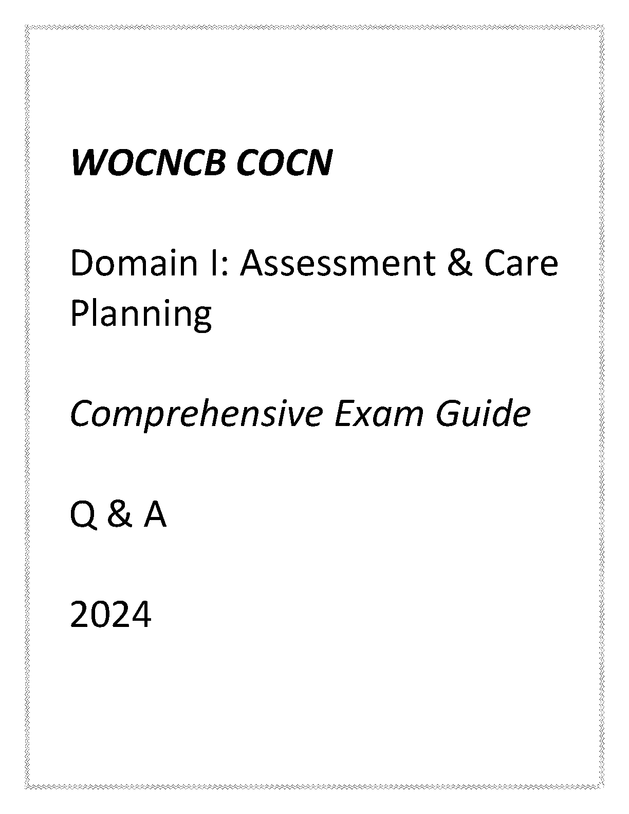 Ace your WOCNCB COCN exam with this comprehensive exam guide, featuring updated questions and answers for 2024. This resource covers all aspects of assessment and care planning, helping you feel confident and prepared on exam day.
