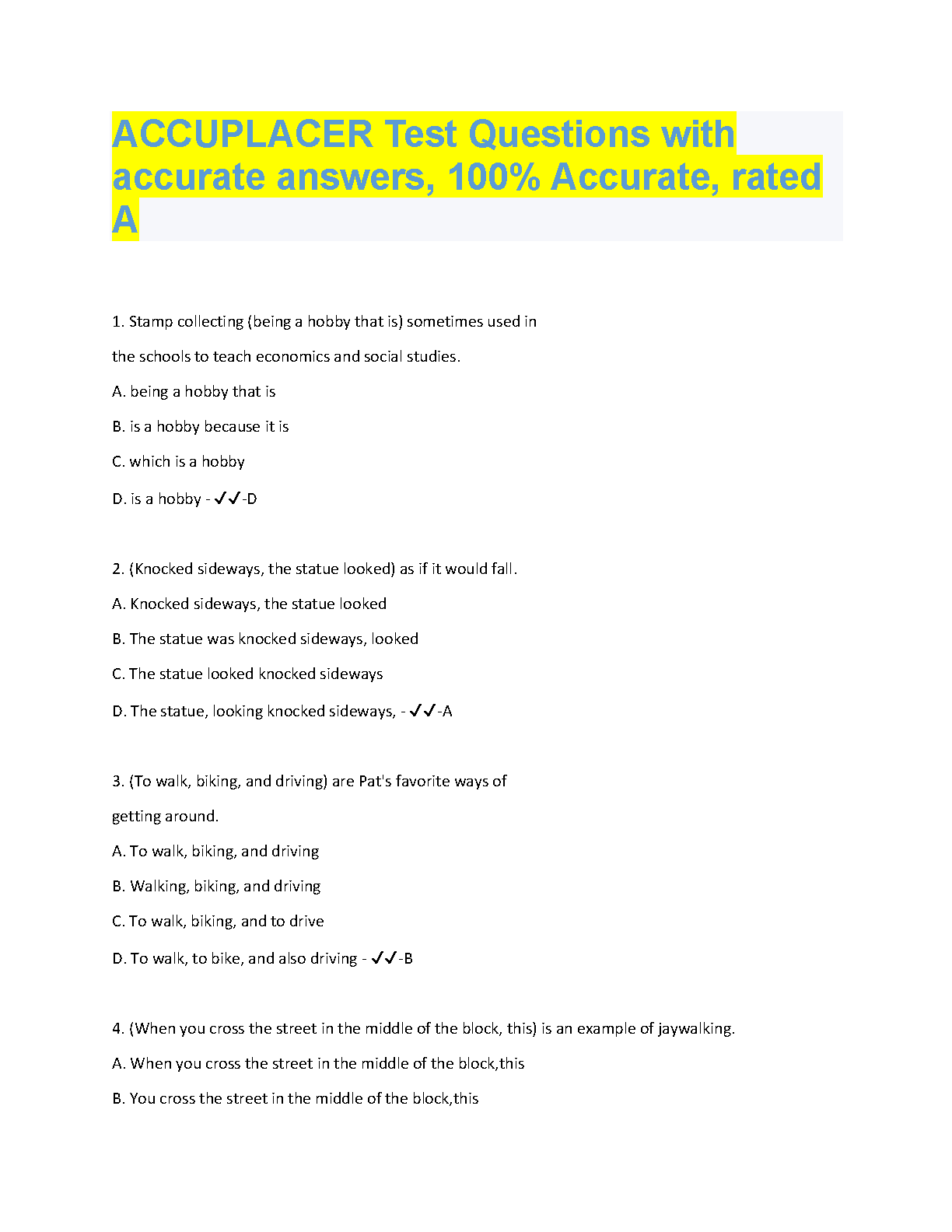 ACCUPLACER Test Questions with accurate answers, 100% Accurate, rated A