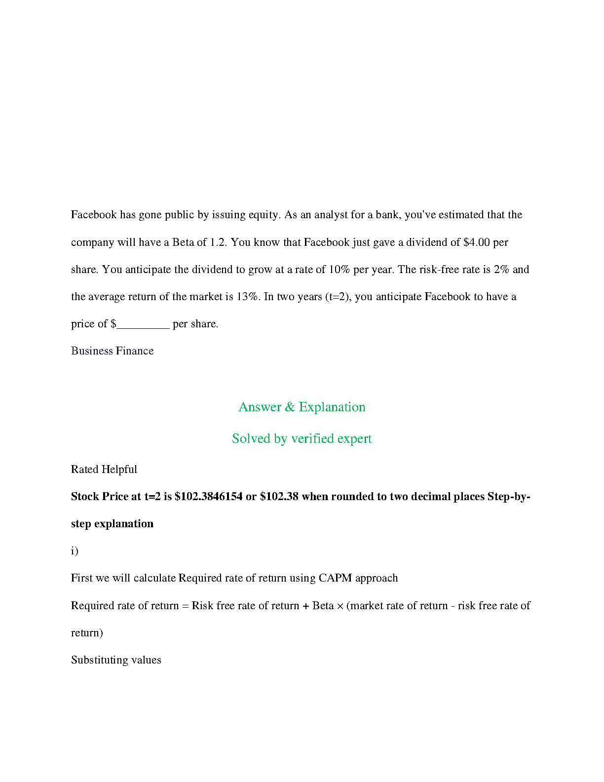 Facebook Stock Valuation using CAPM - A Step-by-Step Guide for Business Finance Students