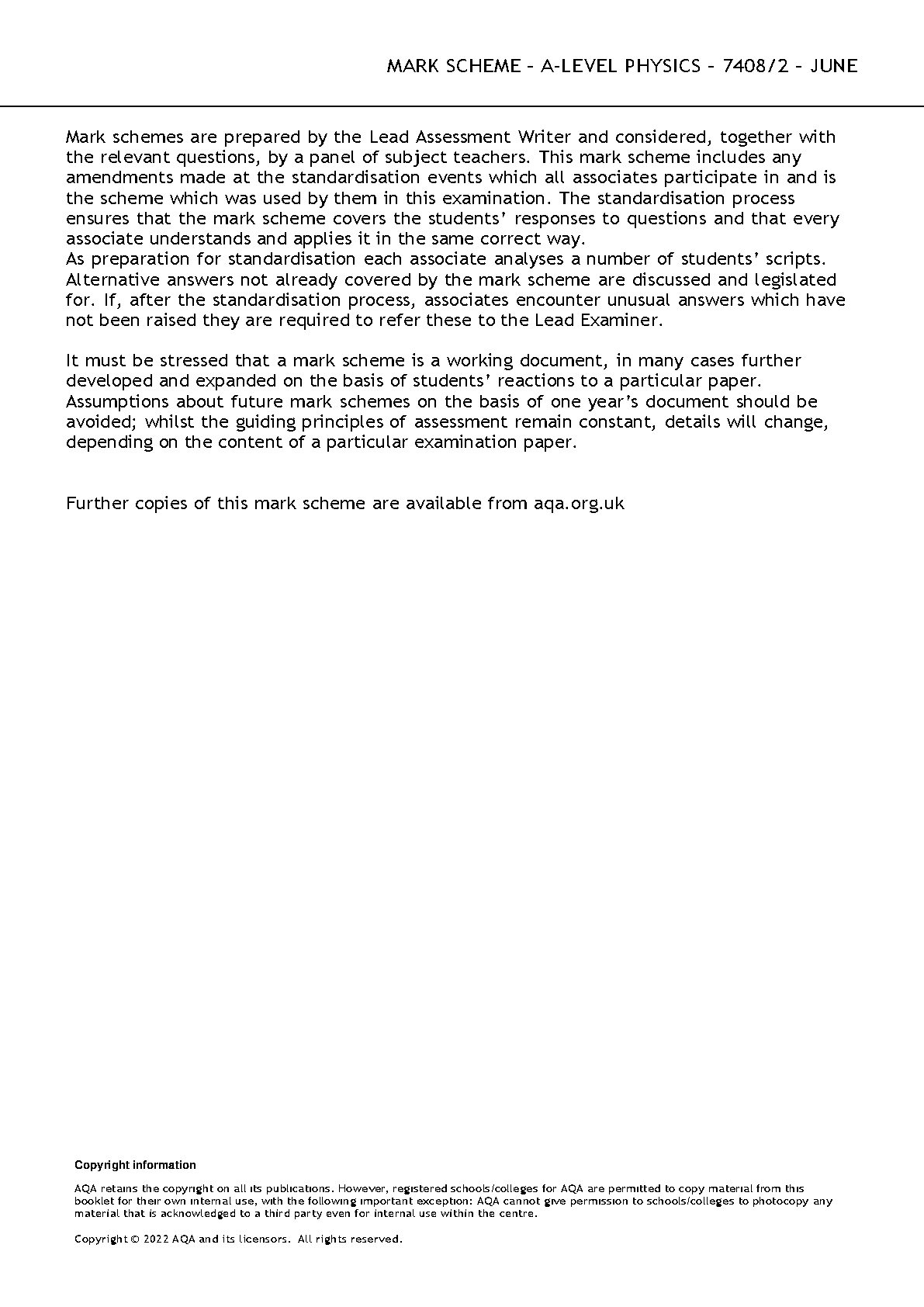AQA Physics A Level 7408 Paper 2 Mark Scheme June 2022 - Ace Your Exams with This Comprehensive Guide