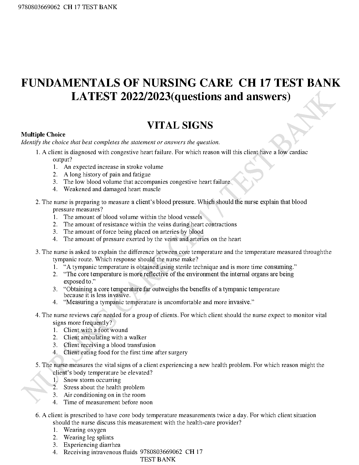 This comprehensive Fundamentals of Nursing Care: Edition 17 Test Bank by Taylor, Lillis, LeMone, and Lynn is a must-have resource for nursing students aiming to master vital signs and other essential nursing concepts. Packed with practice questions and answers, this test bank is designed to help you confidently prepare for your exams and achieve success on your first attempt, preventing the need for resits.